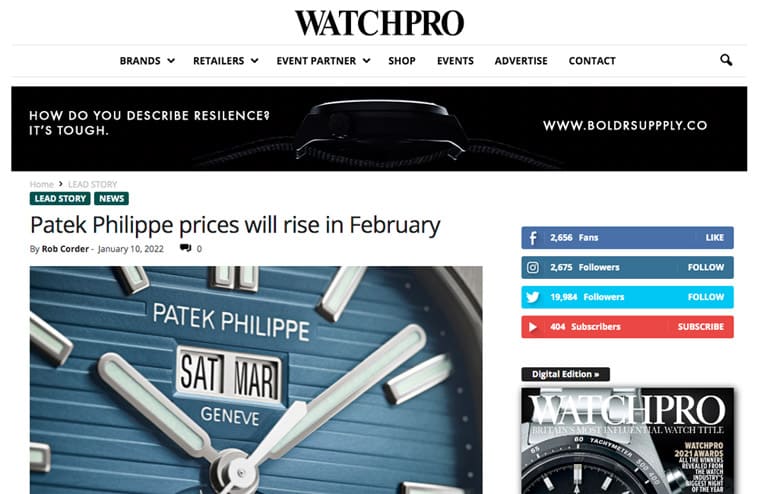 ▲英國媒體WatchPro率先揭露百達翡麗英國地區即將調整手錶定價的消息。