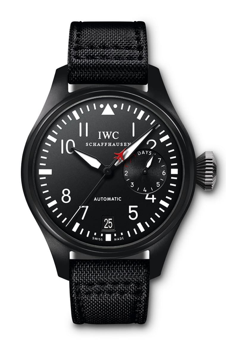 手錶以陶瓷錶殼搭配鈦金屬錶冠塑造外觀,48mm錶殼配備黑色軟錶帶,舒適貼合佩戴者的手腕,其融合1940年代的簡潔儀表風格與高級製錶工藝。IW501901最矚目的新設計要屬秒針末端細小的紅色飛機輪廓,它既是秒針的平衡器,又是Top Gun海軍空戰部隊系列的一大特色。