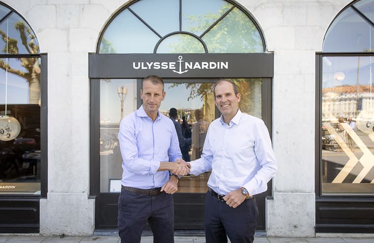 ▲雅典錶行政總裁Patrick Pruniaux與世界環球帆船賽主席Richard Brisius合影慶祝雙方正式合作。