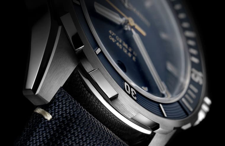 Diver潛水錶以不鏽鋼製作42mm的錶殼,搭配著黑色或藍色的簡約面盤、時標上塗有復古米色色調夜光物料,而包括品牌Logo、六點方向代表雅典錶創廠基地的座標數字以及秒針也同樣都是米色,由此強化手錶的懷舊調性。