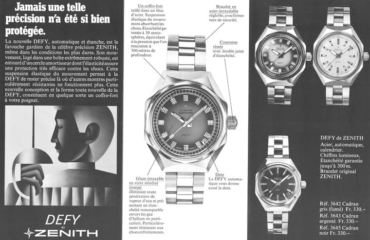 ▲早期DEFY A3642的廣告,其特色造型博得錶迷贈予”Coffre-fort”的稱號。