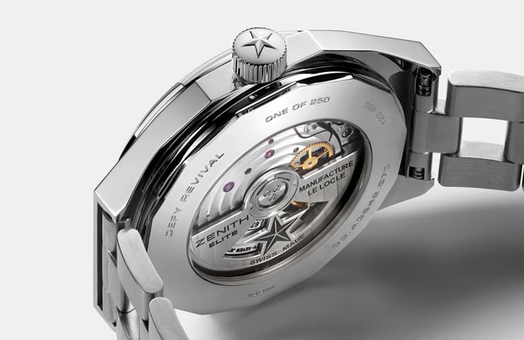 ▲復刻版的錶背改成了透明底蓋,同時手錶搭載的Elite 670自動機芯也比古董錶的老機芯品質更進化。