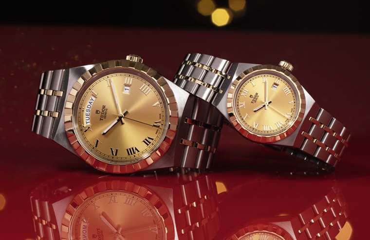 在過年過節期間若出外遊玩或逛街,手上若戴著帝舵的Royal系列半金香檳面,想來是個非常應景又體面的選擇,半金錶殼加上系列本身的設計,可以展現出佩戴者本身雅致雍容的選錶品味。
