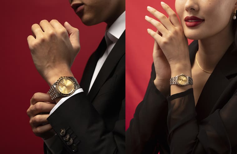 ▲迎接新年,若選擇Royal系列手錶首推半金錶殼搭配香檳金色面盤,手錶散發的高雅貴氣盡展佩戴者本身的氣質。