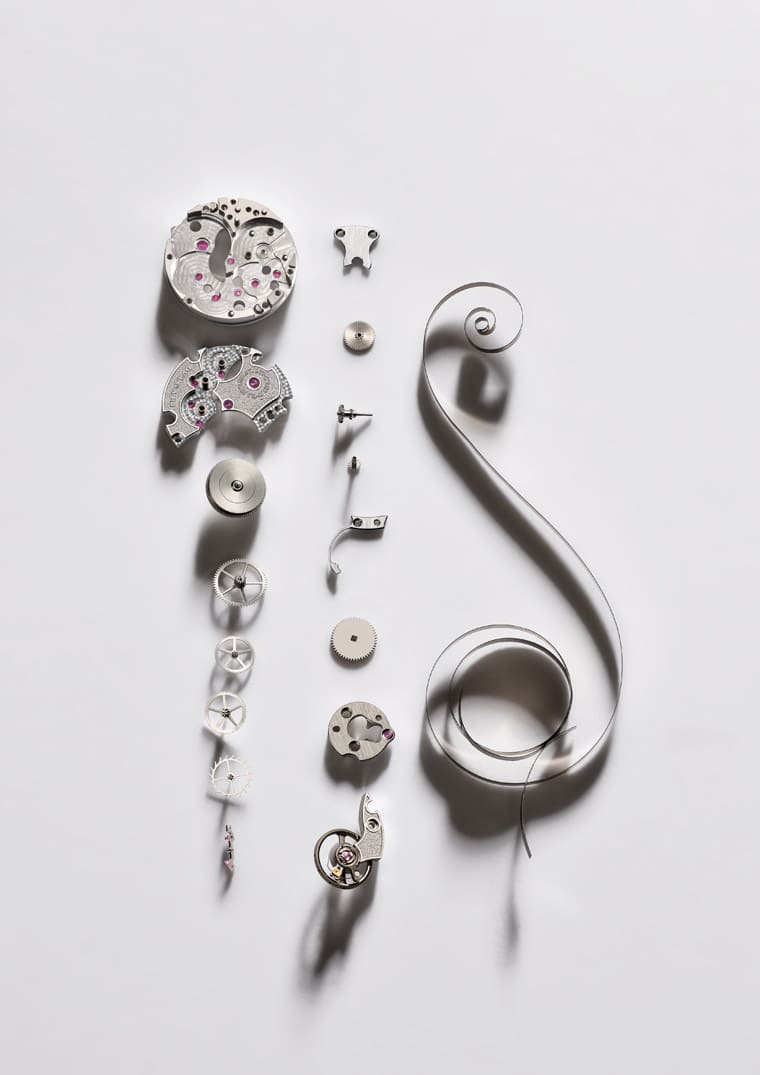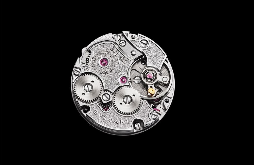 按下靈蛇舌頭即可打開蛇首,開啟後會看到蛇嘴裡面的時、分面盤,視款式不同,面盤會有鑲鑽或鑽石母貝的不同設計,而且這個小面盤連同裡面包藏著機芯的錶頭還可以拆卸下來,讓佩戴者可以按照需要轉換方向,不管要將手錶戴在左手或右手都沒問題。提到機芯,Serpenti Misteriosi神祕錶搭載的BVL100機芯由品牌旗下的Le Sentier工坊研製,希望能夠重現1970年代那種配置在寶格麗女錶微型機芯的風采,這枚機芯機芯直徑12.3mm、厚度2.5mm,重量更僅1.3公克,機芯的體積雖小,但是裡面總共擁有多達120枚零件,寶格麗特別選用白K金平衡擺輪,確保Piccolissimo超小機芯擁有最大慣性,使其走時精準度能維持在穩定狀態。而如此小型的機芯要如何上鍊和調時間呢?只需使用底蓋的雙向旋轉錶冠,就可以達到上鍊與設定時間的目的,機芯結構運用反向機制來實現雙重功能。