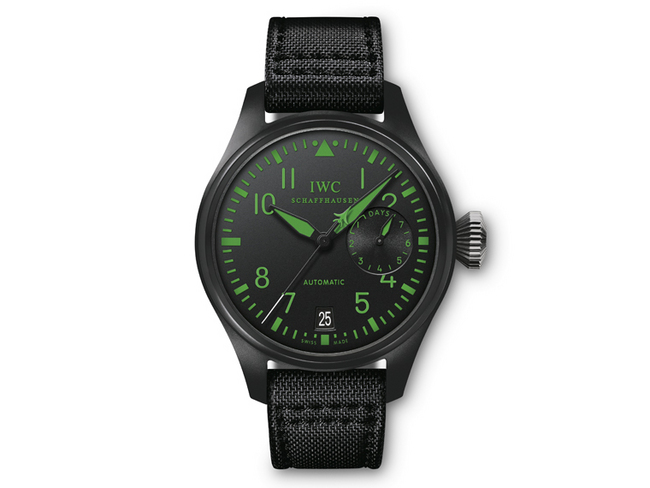 大型飛行員系列Top Gun海軍空戰部隊手錶專賣店特別版完美融合1940年代的簡潔儀表風格與21世紀的頂尖科技。搭載IWC萬國錶自製51111型機芯,上滿鏈後可持續運轉7天。錶底鐫刻精美的Top Gun徽章圖案,全球限量500枚。