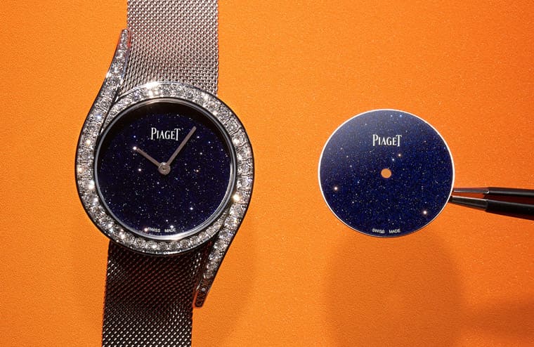 ▲Limelight Gala Aventurine除了發揚系列的造型美學,伯爵更採用砂金石面盤,搭配錶圈美鑽賦予手錶奢華浪漫的風格。