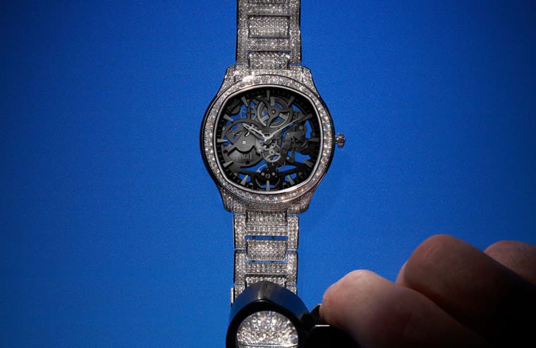 ▲PIAGET Polo Skeleton錶2022年新增錶殼、鍊帶鑲鑽款式,手錶整體依舊維持7.35mm的纖薄程度。