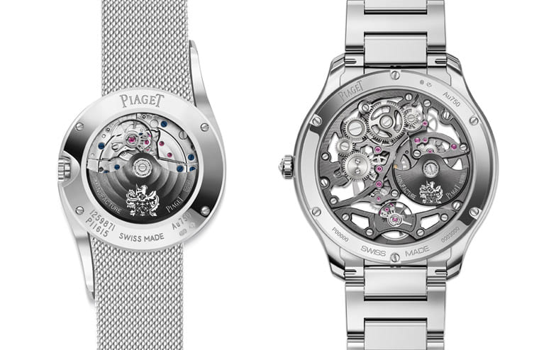 ▲兩款錶皆搭載自動上鍊機芯,且它們的自動盤上同樣都鐫刻有伯爵的家徽圖案。