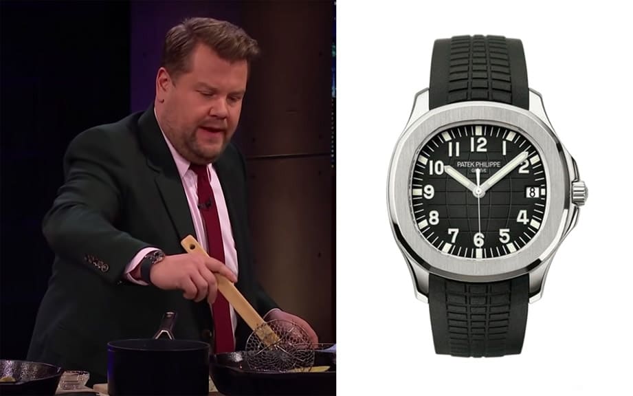 比起小貝克漢穿著一派休閒上節目應戰,詹姆斯柯登還是堅持西裝筆挺的煎牛排同樣令人感到敬佩/傻眼,而就算穿著正式服裝,他依舊選擇佩戴運動感強烈的Aquanaut 5167A,這在過往可能會讓人覺得有點突兀,但現在因為運動錶當道,基本上運動錶已經變成穿什麼都能搭了。由於Aquanaut 5167A配置的是橡膠錶帶,因此詹姆斯柯登戴著它下廚有個優點在於不用太擔心錶帶會被劃傷,只不過相較於小貝克漢把錶戴在左手,做任何動作都是以慣用手右手優先;把錶戴在右手上的詹姆斯柯登做任何動作卻也都是用右手為主,這就讓人比較替他的Aquanaut 5167A擔心了,不過還好節目進行的很順利,兩個人的PP名錶也都安然無事。