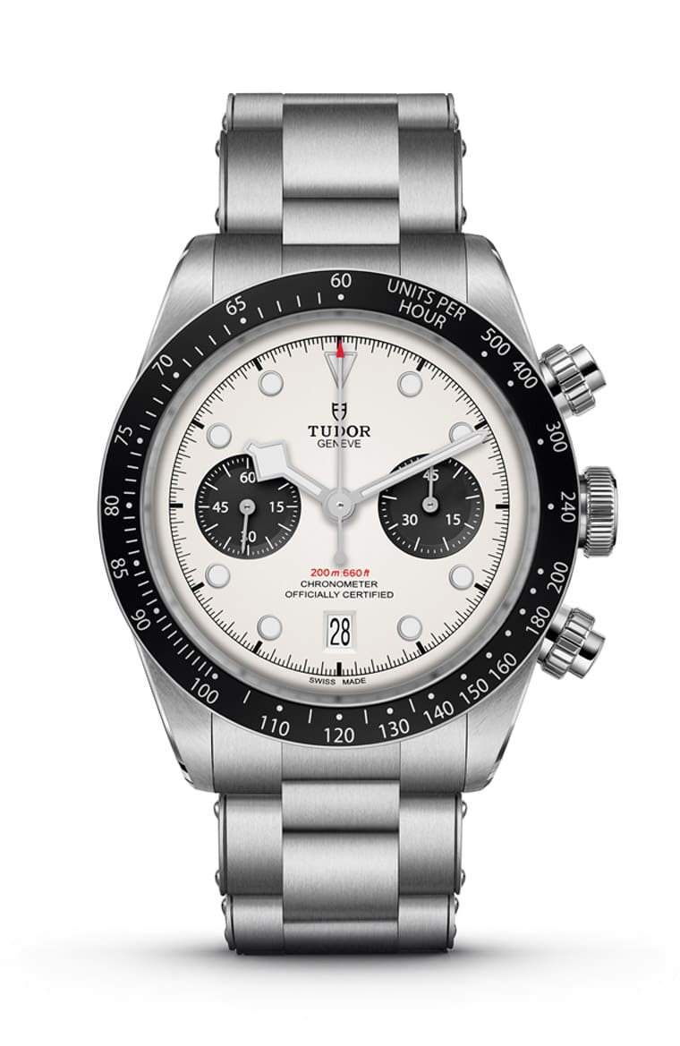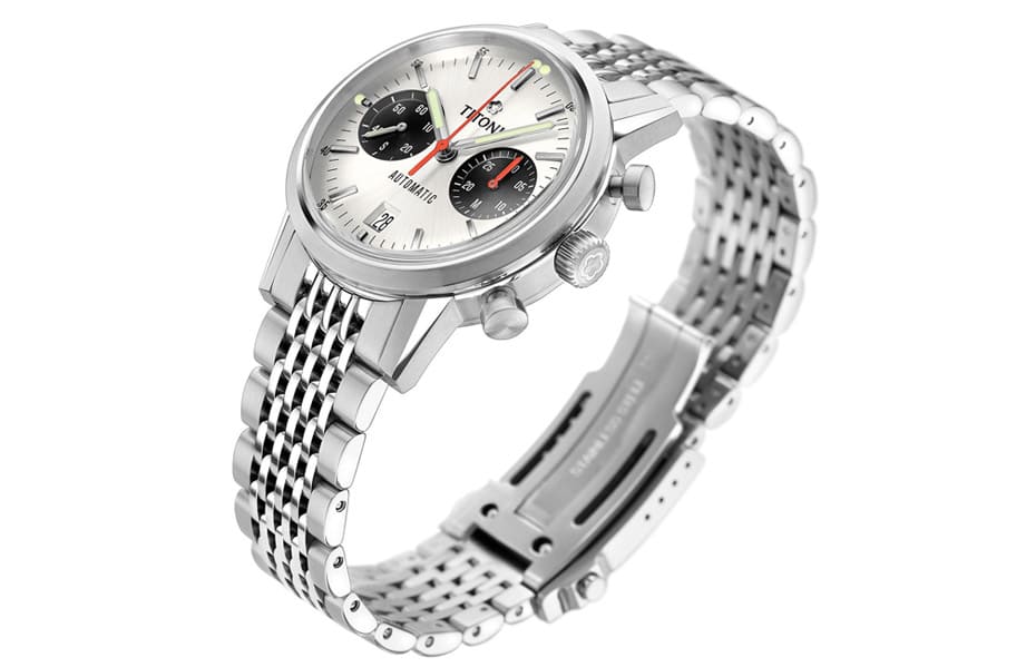歷年來錶壇各家品牌推出過許許多多的計時碼錶作品,有一種設計大約從1960年代盛行至今熱度都未冷卻,那就是深受鐘錶愛好者追捧的”Panda Dial”熊貓面計時碼錶。這種白色面盤搭配黑色小錶盤的樣式約起緣於賽車錶方興未艾的年代,手錶品牌受到賽車場上黑白方格旗的啟發,將黑白配色引進計時碼錶面盤,一方面可以串連起賽車運動的印象,同時更重要的是這種白、黑分明的高對比配色讓佩戴者很容易判讀時間,由於這種白中有黑的組合讓人聯想起熊貓此一象徵和平團結的動物,使得「熊貓面」暱稱不脛而走,直到現在都還是計時碼錶作品中被認為經典不敗的設計。目前市場上擁有熊貓面設計的計時碼錶為數豐富,近期有兩款錶因為品牌口碑、品質、設計乃至價格都很有吸引力尤其受到錶迷關注,一款是TITONI梅花錶的Heritage傳承計時系列現代復古版,另一款則是TUDOR帝舵2021年改款後的Black Bay Chrono。