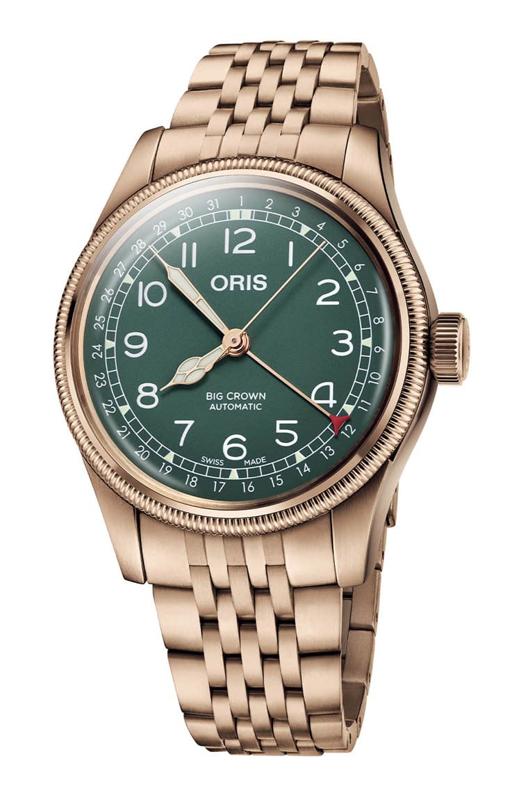 ORIS是入門價位品牌中較早推出青銅錶的錶廠,發展到2020年,品牌首度於Hölstein 2020限量計時碼錶啟用青銅錶殼搭配青銅鍊帶的組合寫下新里程碑;在那之後,ORIS又在2021年於Divers 65系列中延伸出青銅鍊帶搭配糖果色面盤的新嘗試。有鑒於青銅鍊帶目前在市場上還是少數,因此品牌2022年再度進攻這片藍海市場,第一次替青銅錶殼的Big Crown指針式日期錶搭配青銅鍊帶,讓喜愛青銅材質的人可以擁有除了潛水錶之外的選擇性。