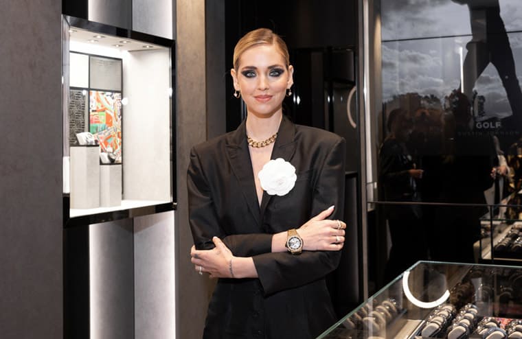 義大利時尚網紅Chiara Ferragni日前出席HUBLOT宇舶米蘭店開幕,她身穿一身裁俐落的黑西裝,佩戴宇舶最新的Big Bang Integral黃金鍊帶計時碼錶,展現現代女性的優雅、自信與活力。