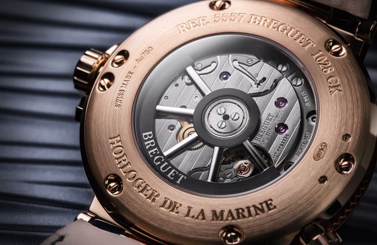 ▲透明底蓋下的77F1機芯結合Marine系列的船舵造型鏤空自動盤,同時機芯的打磨修飾也具有一流錶廠的水準。