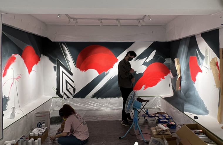 ▲DEBE直接在G-SHOCK STORE, TAIPEI的牆面創作塗鴉藝術,彰顯本次展覽的破曉主題。