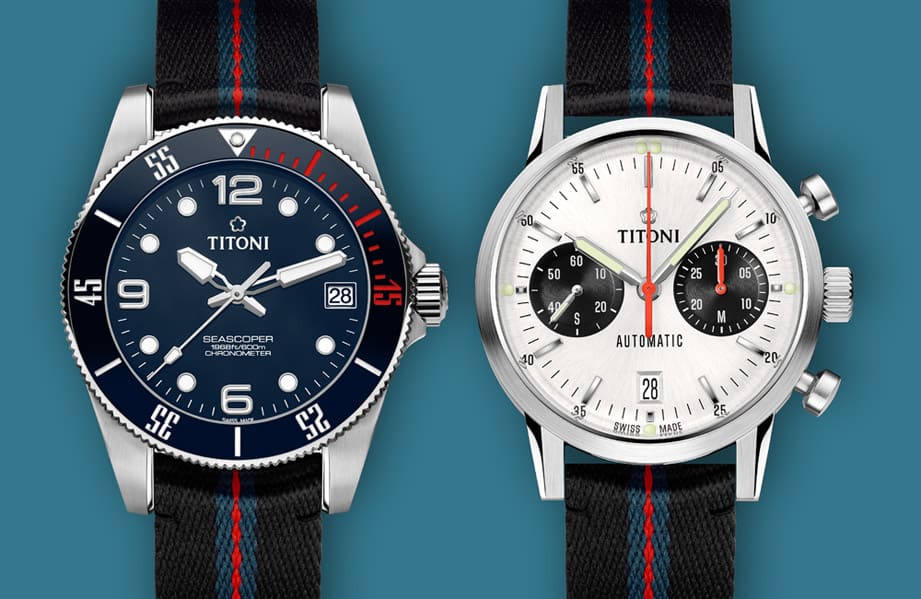 ▲Tide Ocean最近與TITONI合作生產的NATO織紋錶帶寬度為20mm,完美匹配Seascoper與Heritage等系列手錶。