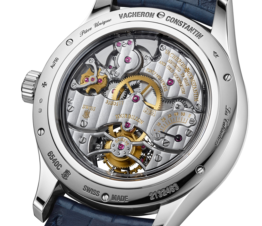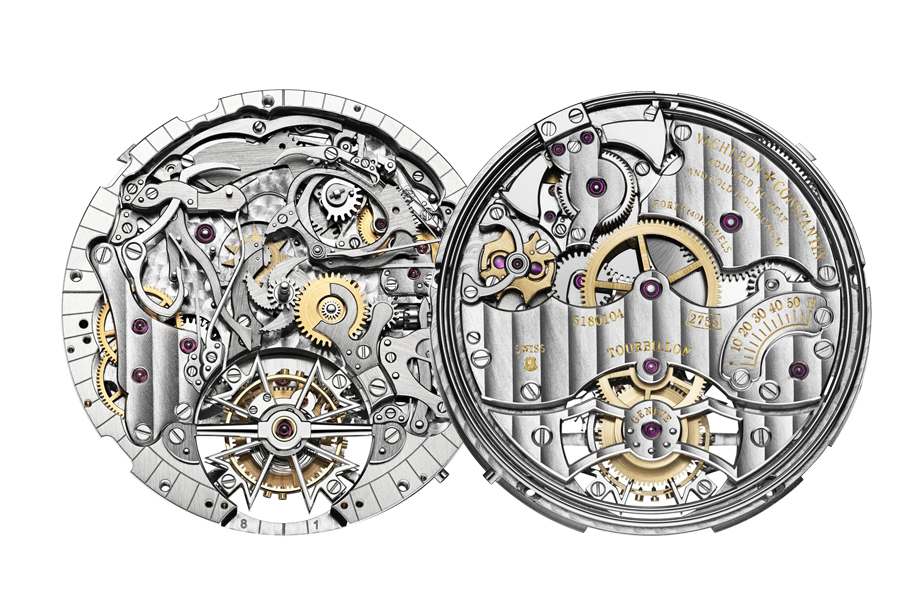 ▲腕錶搭載江詩丹頓自行研發並製造的 2755 TMR三問報時陀飛輪機芯,由471個零件組成。