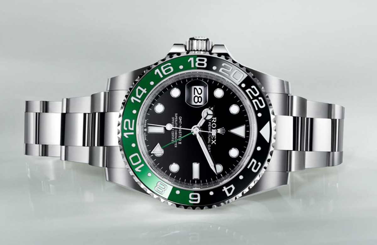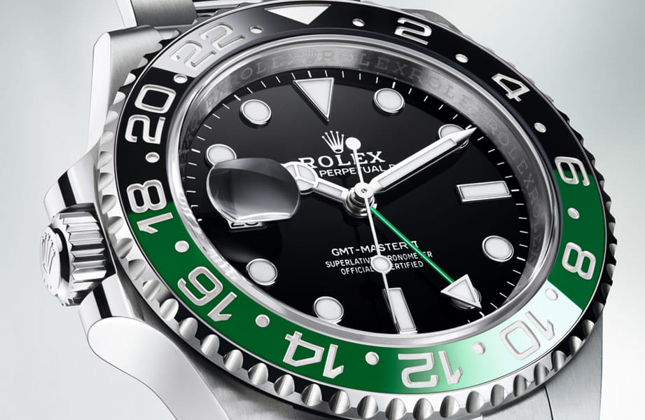 ▲面盤上的GMT指針呼應錶圈顏色改成綠色,隱隱有點向舊款116710LN致敬的意味