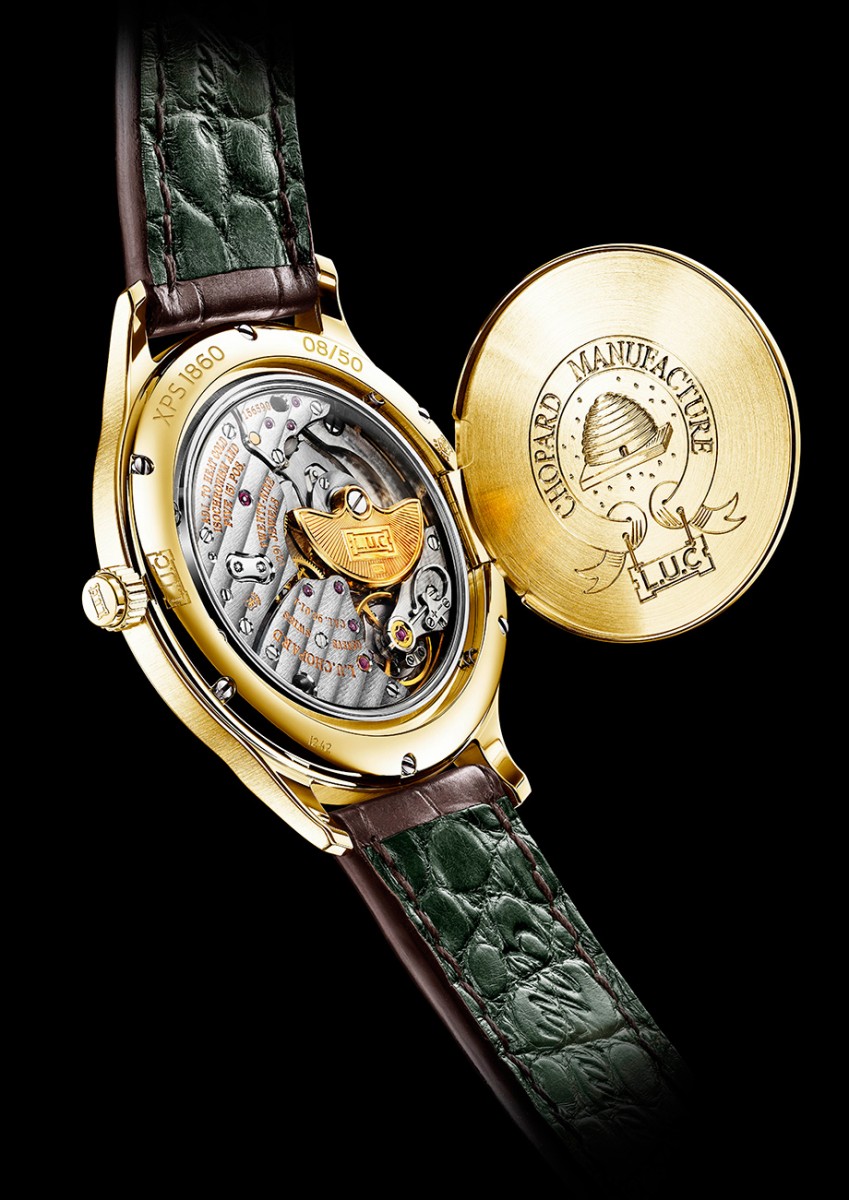 L.U.C XPS 1860 Officer腕錶的底蓋內側再次採用蜂窩與蜜蜂的手工雕刻裝飾,此裝飾以隨機方式排列,因此也使每一枚腕錶都舉世無雙。在裝飾性功能的背後,這些各具巧思的雕刻藝術也令人聯想到蜜蜂的天性:勤勞、忠誠、謙虛、孜孜不倦地勞動、發揮團隊精神。L.U.C XPS 1860 Officer腕錶的優雅風格,其經過精心研究、永不褪流行的完美比例,經日內瓦印記證實的高品質製造水準,都在呼應蜜蜂的精神,彰顯出該系列主導其創作的理念原則。錶底所選用的蜂窩圖案與錶盤上的裝飾圖紋協調一致、交相呼應。這種裝飾手法不僅能輝映光線,使之更顯亮采,而且也更引人注目。