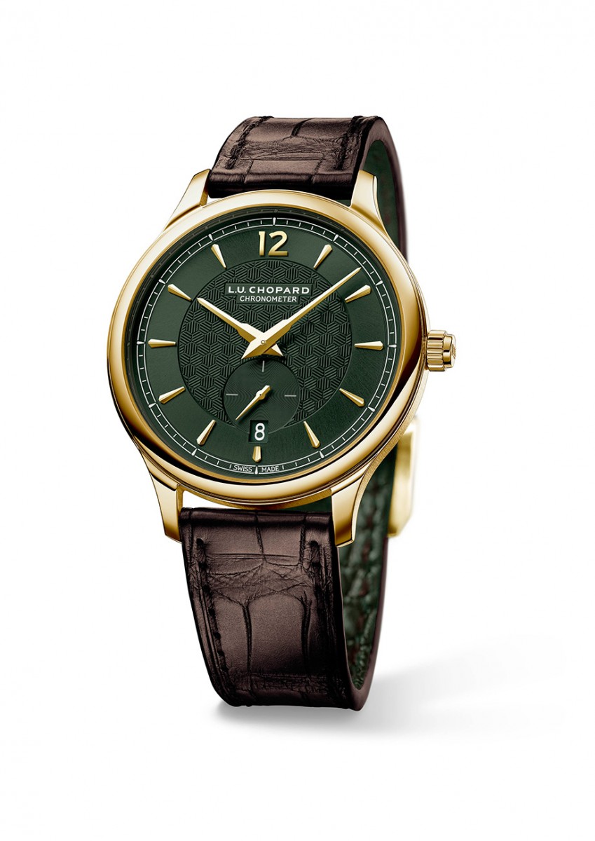 全新的L.U.C XPS 1860 Officer腕錶的森林綠色錶盤底部以18K金打造,外環部位施以緞面太陽放射紋裝飾,而6時位置設蝸紋打磨小秒盤。錶盤中央裝飾了手工機鏤蜂窩型圖案,而底蓋外側也裝飾了放大版的同樣圖案,巧妙呼應了蕭邦製錶史的兩大里程碑。第一個里程碑標記著蕭邦錶廠所創的獨特腕錶:L.U.C 1860腕錶,這款於1997年推出的卓越時計在錶盤中央裝飾了手工精製的機鏤飾紋。第二個里程碑可回溯至路易-于利斯•蕭邦(Louis-Ulysse Chopard)創建蕭邦品牌之始。自蕭邦創立,直至1920年代,這鐘錶世家一直很強調蜜蜂所傳遞的象徵意義。因此,那時期的蕭邦表不論是在機芯上或在底蓋內側,都鐫刻了飛舞著蜜蜂的蜂窩。當蕭邦錶廠於1996年創立時,卡爾-弗雷德理克‧舍費爾(Karl-Friedrich Scheufele)先生選擇再次採用這極具象徵意義的圖案,將它運用在L.U.C系列(本系列名旨在向蕭邦創始人致敬)的部分錶款上。