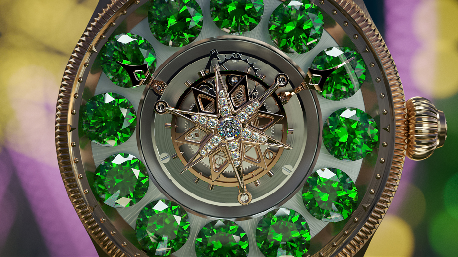 G-TIMELESS PLANETARIUM為高級製錶領域開創新的一頁,12顆公主式鑲嵌寶石的光環圍繞錶面,隨著不斷變化的時間閃爍絢麗的光芒。腕錶更隱藏著驚人的力量:只要按一下按鈕就能啟動鑲嵌寶石的轉盤,在光的盛宴中圍繞錶面旋轉。突破性的發明使這種獨特有趣的開關控制成為可能:Gucci全新獨家Dancing Hours飛行陀飛輪機芯的中心飾以令人目眩神迷的鑽石星星。箭形指針向高級製錶精緻技術細節的傳承致敬,錶面的每次旋轉都生動地展現Gucci瑞士腕錶對新穎技術與雋永義大利風格的巧妙融合。G-TIMELESS PLANETARIUM提供白金、玫瑰金和黃金款式,分別搭配綠色沙弗萊石、藍色坦桑石及黃色綠柱石轉盤。