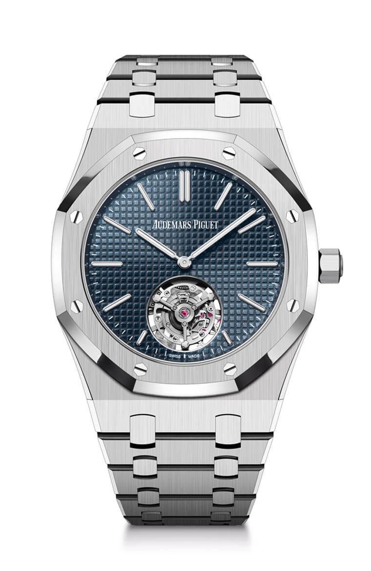 ▲愛彼發表皇家橡樹自動超薄飛行陀飛輪(RD#3),這款錶外殼厚度僅8.1mm,與系列中具備二針功能的Jumbo超薄錶一致。