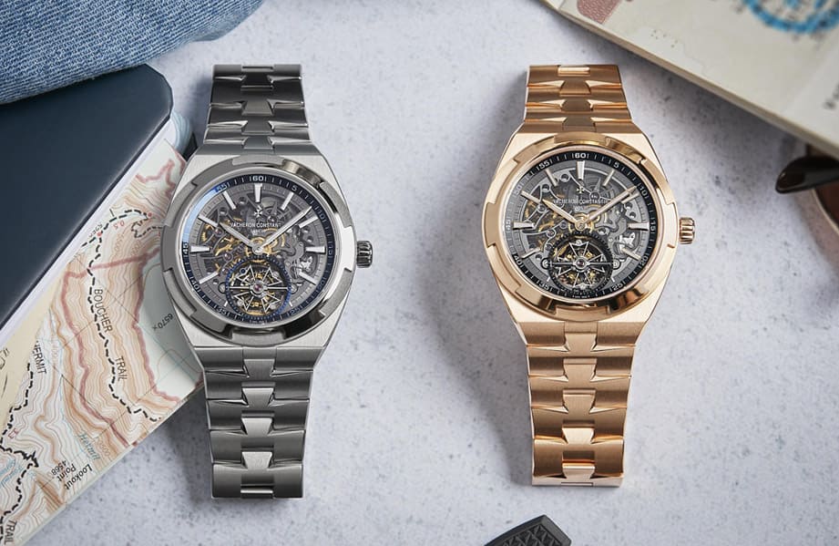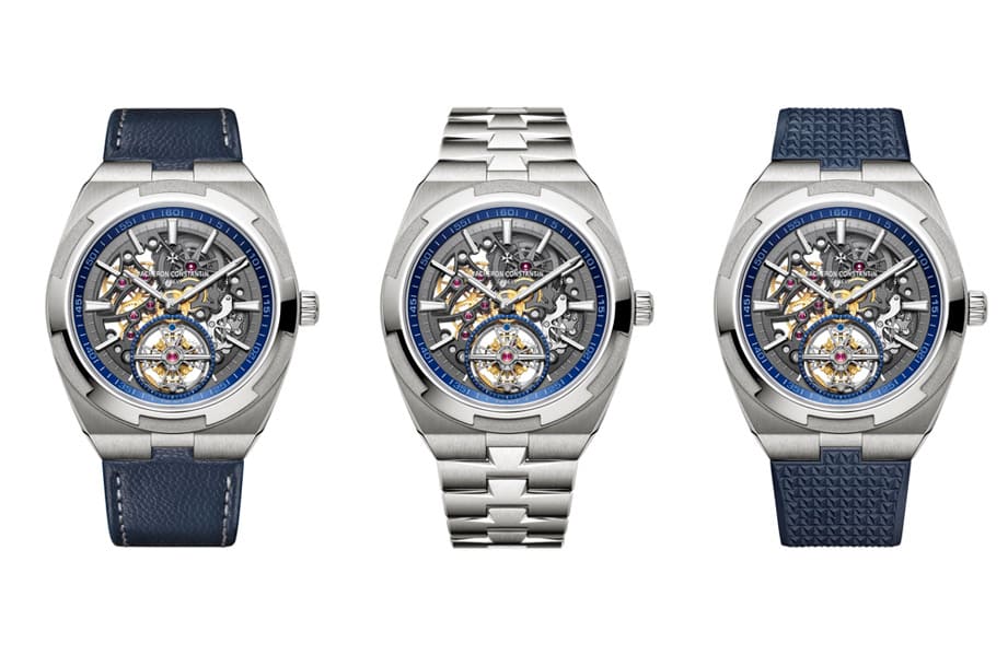 Overseas系列是現今錶壇風行錶帶快拆裝置的先驅之一,由於兩款Overseas鏤空陀飛輪都有搭配金屬鍊帶,因此品牌也會再額外附上與面盤外緣刻度環顏色呼應的橡膠錶帶與小牛皮錶帶各一,其中玫瑰金款的膠帶與皮帶配置的是針扣,而鈦金屬款膠帶與皮帶配置的則是摺疊扣,凡此都能突顯兩種材質版本的個性。