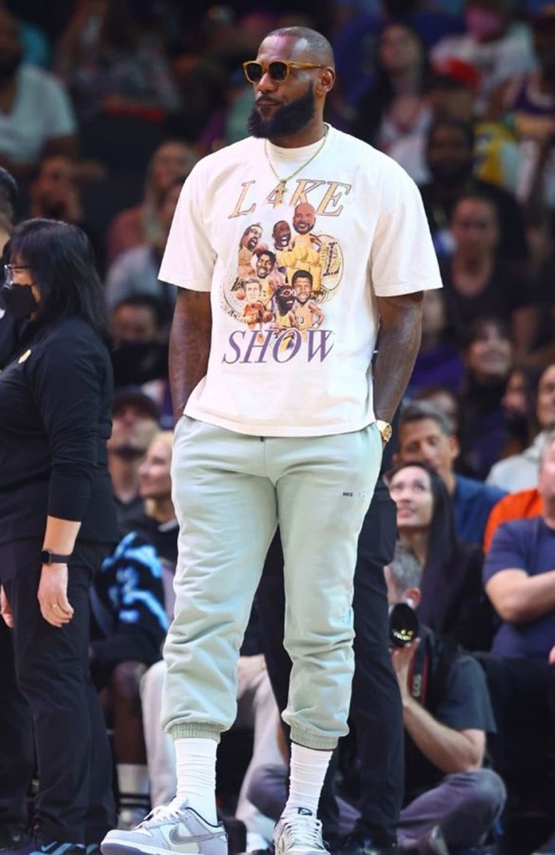 ▲在NBA 2021-2022賽季季末一場湖人隊對上太陽隊的比賽,因傷不克出賽的LeBron James一身休閒裝扮現身場上觀戰。Source:The SportsRush