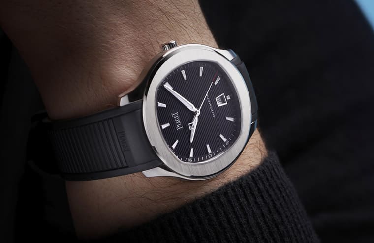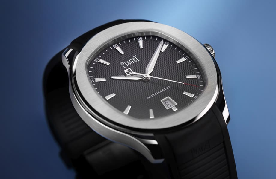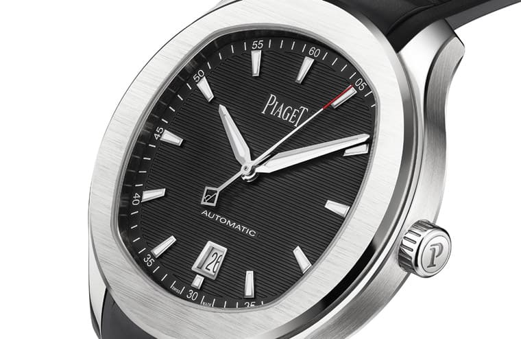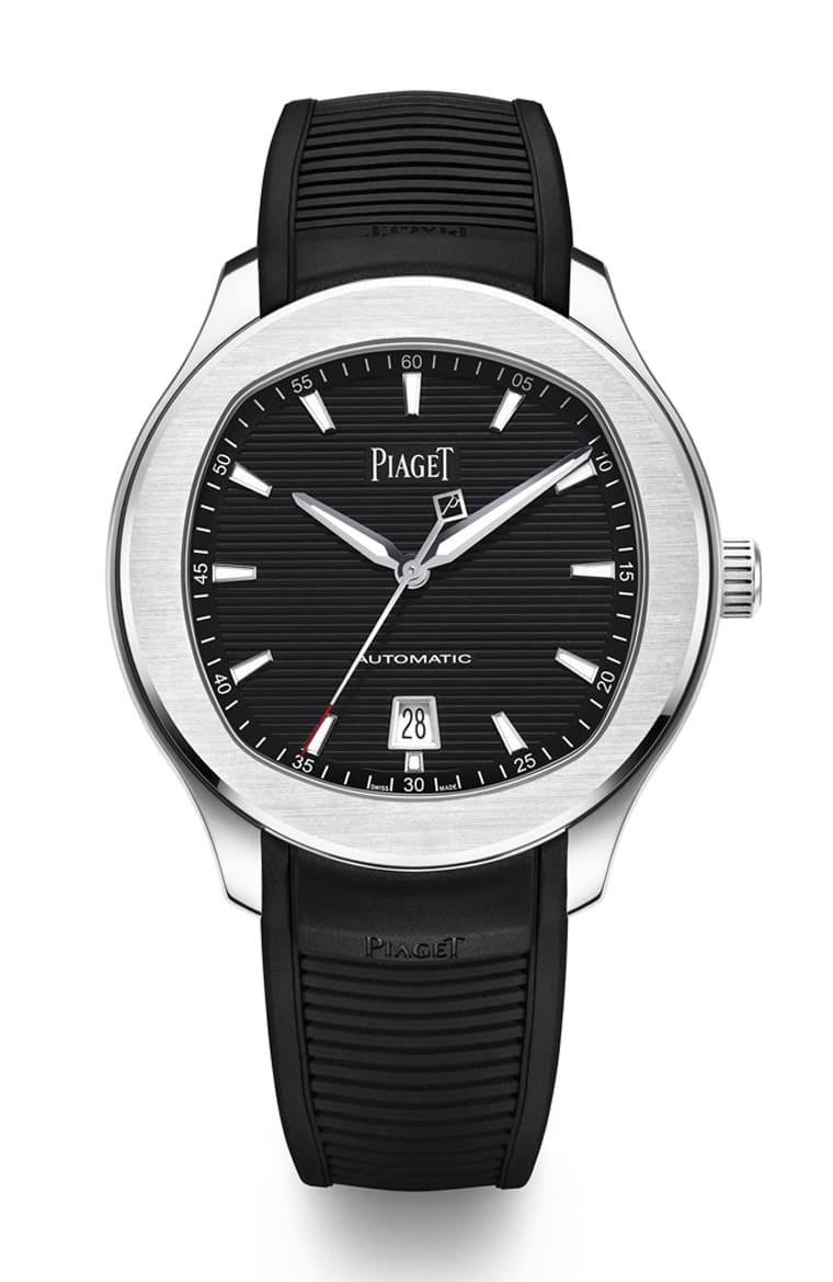 新款PIAGET Polo三針錶的錶殼一樣採用高級運動錶最受市場喜愛的不鏽鋼材質,它的外觀依舊特色十足,呈現錶殼外部是圓形而面盤外側又是枕形的「形中有形」伯爵設計哲學,在現在幾乎高級品牌都要有一款運動錶迎合市場需求的潮流下建立起屬於自己的辨識度。這次新款讓人眼睛一亮的部分在於過去PIAGET Polo三針款主要配置金屬鍊帶,後來則是有再延伸出皮帶的款式,不過PIAGET Polo在品牌旗下畢竟是屬於運動休閒風格導向的作品,因此前幾年在系列的某些計時款式上已經開始見到搭配橡膠錶帶的嘗試了;橡膠錶帶相對於皮帶絕對更適合休閒、運動風格的手錶,此次伯爵替PIAGET Polo三針錶換上黑色的橡膠錶帶,雖然不起眼,但卻是保險耐看的好選擇。