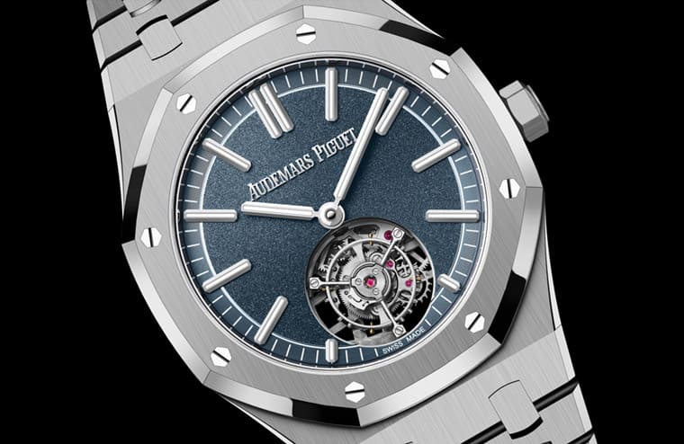 ▲John Mayer佩戴的皇家橡樹自動上鍊飛行陀飛輪「50週年紀念款」品牌先前未公開發表,不過目前在AP官網已經上架。