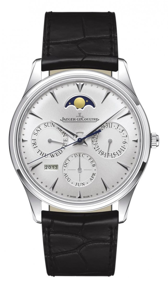 ▲超薄大師系列萬年曆手錶以不鏽鋼材質製成,搭載868自動機芯,展現出萬年曆等級的複雜功能。