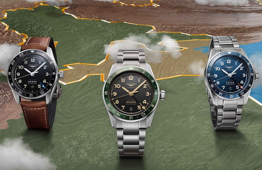 ▲浪琴表最新發布Spirit Zulu Time腕錶,包括藍面藍圈配橘針、黑面黑圈配藍針、以及炭黑面綠圈配復古米黃針共三種配色。