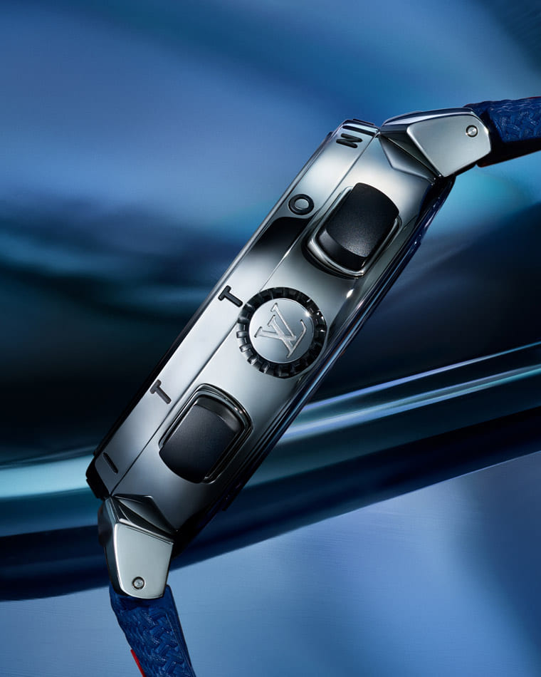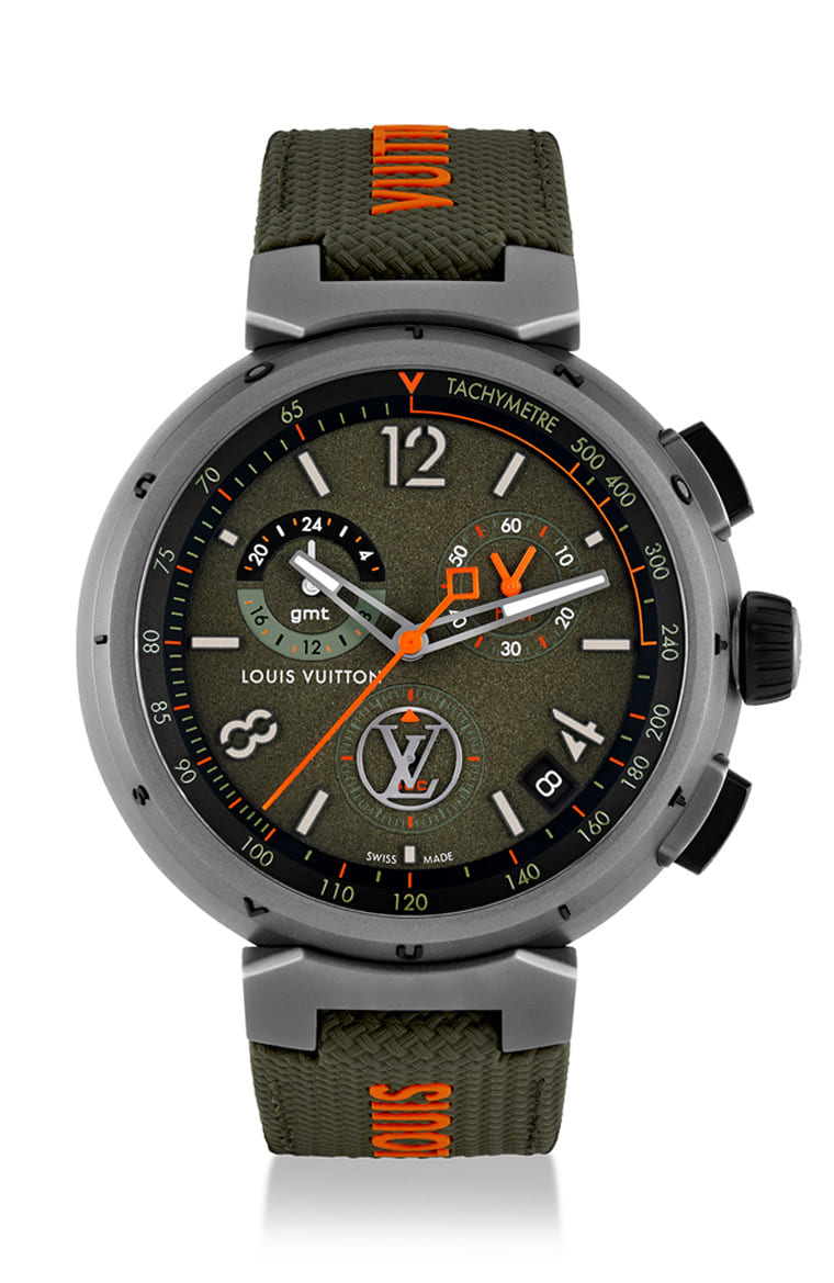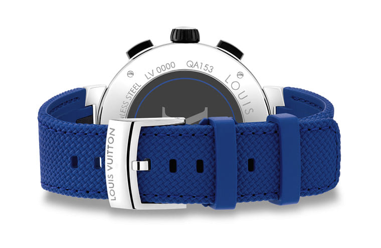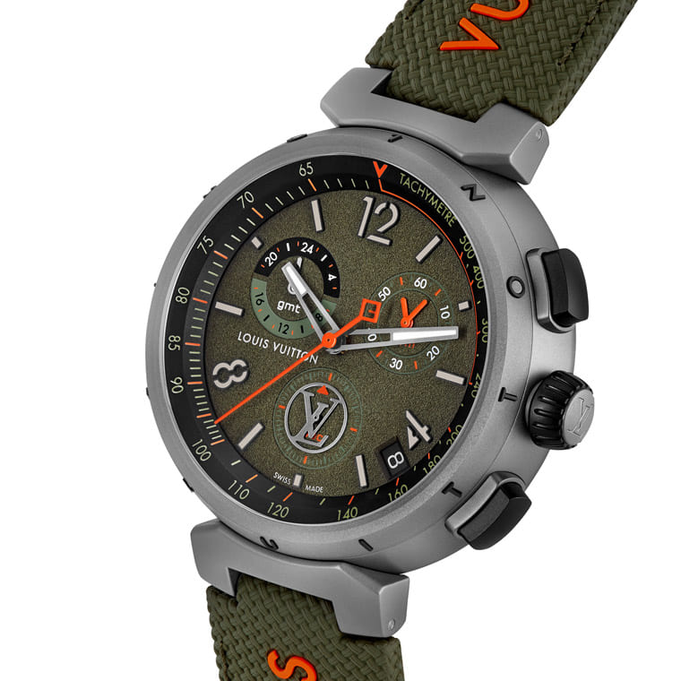最後要提的是Tambour Outdoor Chronograph GMT都具備路易威登自行研發的錶帶快拆系統,如果佩戴者對於原廠配置的藍色或綠色膠帶有更多想法,還可以前往品牌專賣店選擇替換錶帶,依照自己的喜好和風格再選一條可以和原廠錶帶交替使用的備用錶帶,從中衍生出靈活的穿搭組合。