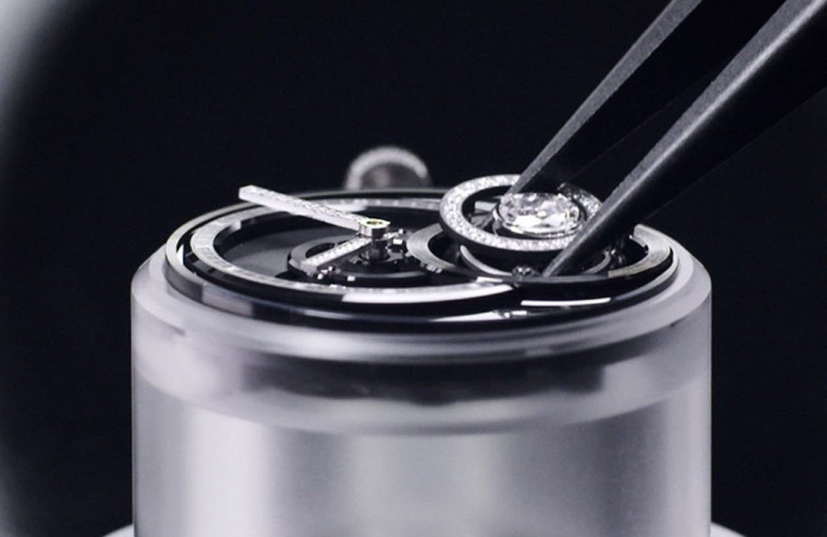 Arnaud Chastaingt在設計階段便鎖定要用鑽石來替J12腕錶開創新局,因為此一元素乃是香奈兒女士最愛的寶石,亦為歷來品牌作品中不可或缺的核心裝飾。不過如果只是用鑽石鑲嵌於錶殼或面盤等處尚無法突顯出香奈兒的創意與工藝水準,因此Arnaud Chastaingt想到要在陀飛輪框架的軸心鑲嵌一顆大尺寸的鑽石,一來有軸承的作用,同時也讓鑽石隨著陀飛輪自轉反射出璀璨光芒,隱喻時間流轉的寶貴價值。