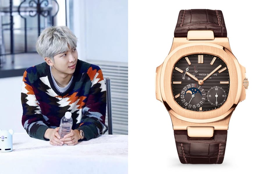BTS的團長RM在團裡負責主Rap,他的歌曲創作能力同樣優異,且優異的外語能力也成為團員中接受國際媒體訪問時絕佳的發言人。RM對於百達翡麗的 Nautilus 5712R情有獨鍾,同時他也擁有像勞力士Day-Date 40鉑金冰藍面這種旗艦款,看來他對於知名品牌熱門錶的頂級款相當熟悉,就算要花個十幾二十萬美金他也是豪不猶豫開下去,展現出團長的氣勢。