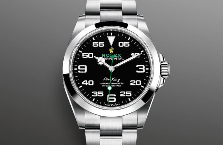 2022年剛改款的Air-King再度引起錶迷關注,它誕生的原因就是為了提供給飛行愛好者一款紮實可靠又可以清楚閱讀時間的工具錶,雖然手錶目前的面盤設計靈感來自超速噴射汽車的儀表,不過它擁有加大的時標與刻度,對飛行員來說的確也是提升閱讀清晰度的貼心設計。考量到這款錶過去在勞力士運動錶家族中相對冷門的市場地位,如果你會選擇Air-King,代表你不愛隨波潮流,更傾向展現特立獨行的自由意志。