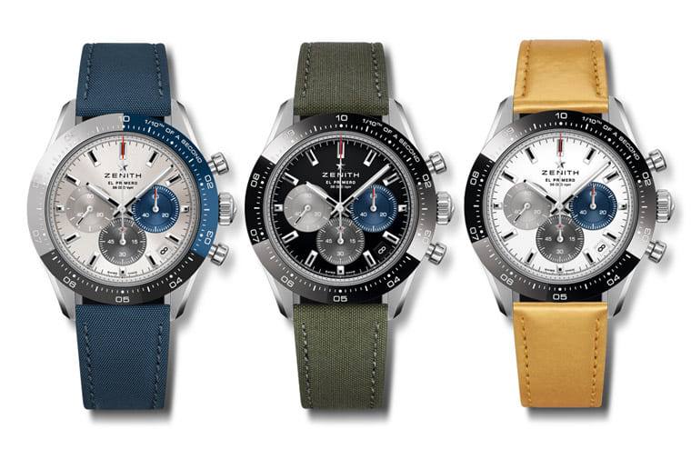 真力時和Nona Source聯手為Chronomaster Sport系列量身打造出三款全新錶帶,包括以由防水藍色織物製成的Deep Dive深潛錶帶、由輕質棉麻混紡面料製成的Rifle Green步槍綠錶帶,還有以金黃色棉質混紡材質造就的Pale Marigold 淡金盞花錶帶。第一款會讓人聯想到El Primero計時碼錶經典三色小錶盤中的配色,第二款則是可以替Chronomaster Sport手錶營造意外合拍的補色效果,至於第三款是從現代流行的街頭潮流文化與高級時裝中取得的新概念,賦予手錶大膽亮眼的型格。