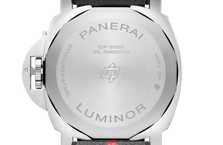錶背以實底蓋設計保護內部的P.6000手動上鍊機芯,PAM01342的防水性能達到100米,雖然並非專業潛水錶規格,但是達到一般生活防水功用綽綽有餘。P.6000這枚機芯有停秒裝置,當上鍊錶冠被拉出時,可同時掣停擺輪,讓佩戴者可以精準校對時間,而機芯的動力儲存達3日,以手上鍊機芯而言也是相當實用的水準。最後不得不提的就是手錶既有聯名身份又採限量發行,但是它的定價在品牌旗下卻顯得相對親切,成為沛納海入門款中相對特殊的一款,在價位相近的情況下,往往也會讓人更想要鎖定這只帶有特別創作意義的作品。