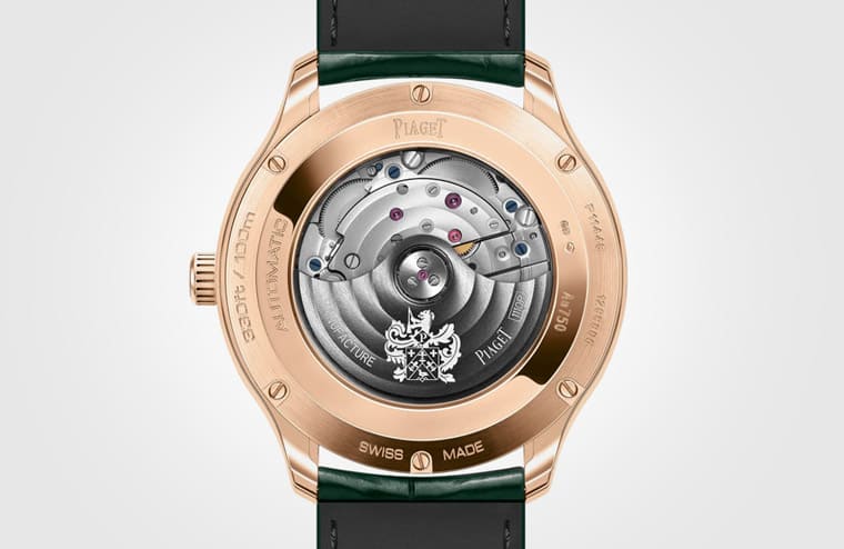 錶款搭載的1110P機芯規格包括4Hz震頻、50小時動力儲存等皆符合現代需求,翻至錶背可由透明底蓋一窺機芯的樣貌,包括自動盤表面施以日內瓦波紋裝飾,其上和鐫刻有伯爵的家徽圖案,同時還加碼日內瓦波紋修飾,而從機芯零件的倒角、拋光等細部處理,也同樣能夠展現出一流錶廠的身手。