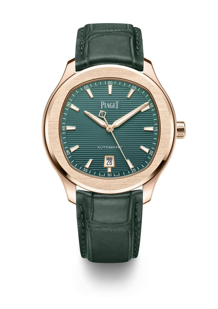 2022年再度換上孔雀綠面盤的Polo首度改為高貴的玫瑰金材質,但這次伯爵並未強調手錶限量發行,可能和貴金屬款式的年產量原本就相對有限有關。其分別從前兩款綠面Polo擷取元素,例如深綠色鱷魚皮錶帶以及玫瑰金質的時標與指針等,在沉穩大方的溫潤玫瑰金錶殼與面盤細節澤襯托中,孔雀綠色調面盤顯得更有氣勢並在水平飾紋的「助攻」下,營造引人入勝的光影層次感,盡展伯爵高級製錶品牌的水準。