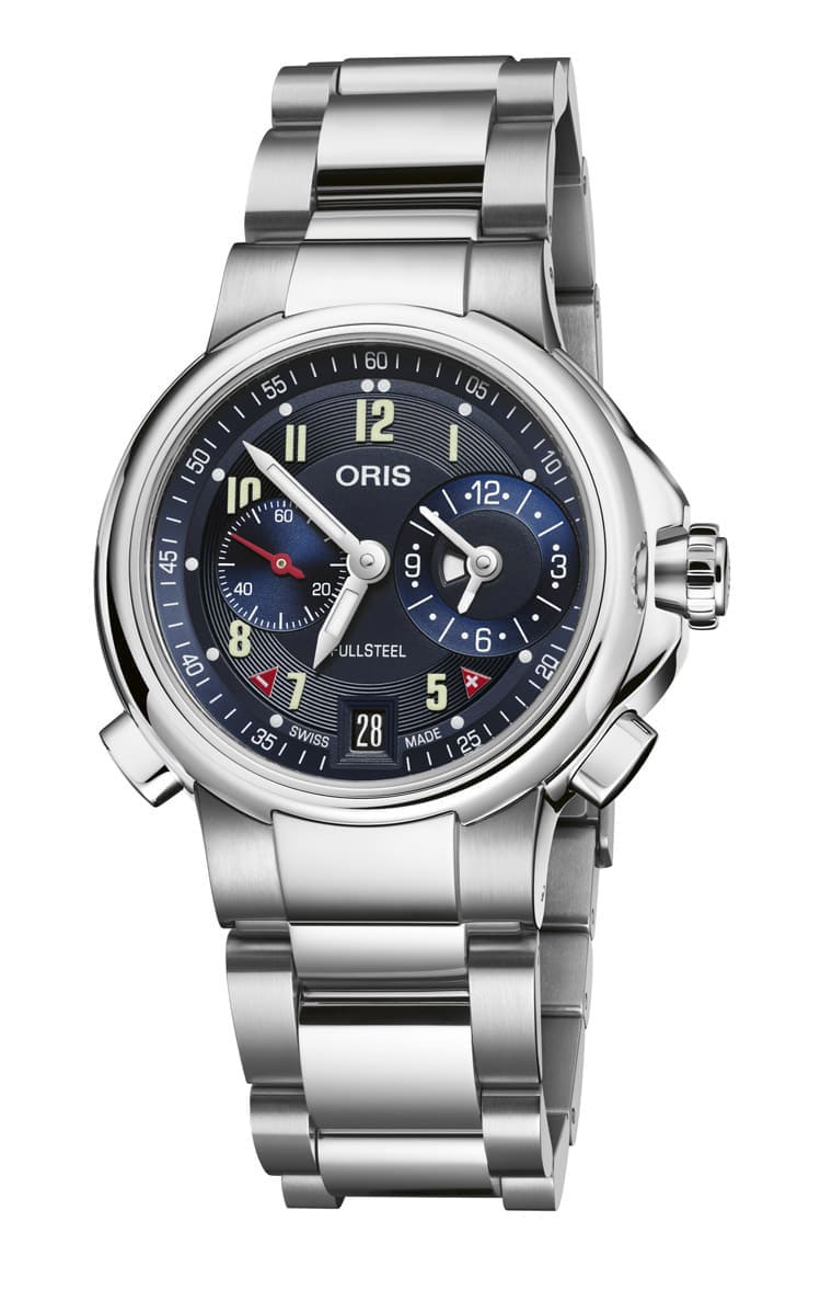 ORIS最新的Hölstein限量錶設計靈感轉向品牌1998年推出的一款Full Steel Worldtimer運動錶,以高度還原舊作的設計,帶人重溫當年挺過石英風暴時,ORIS手上相當受市場歡迎經典傑作風采。錶款採用不鏽鋼材質,錶徑36.5mm沿用原版的規格,同時品牌替其配置的三板帶、深藍色面盤(小秒針與指示快調按把的加減符號則是以紅色突顯)也都很有Full Steel Worldtimer當年的經典況味。這款錶依舊搭載ORIS自豪的Calibre 690(品牌於1997年研發成功,當時屬於ORIS所製作過最複雜的一枚機芯),不過錶背實底蓋乃是刻上ORIS Bear圖案,接續前兩款作品的產品特色,所以無緣一窺機芯樣貌。