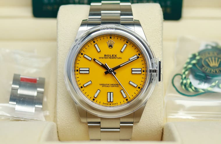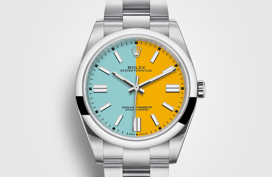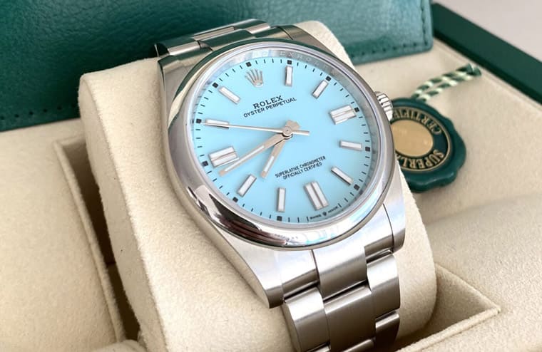 2022年高級手錶爆款的跌價潮令人始料未及,有些錶前幾年在市場上呼風喚雨,到了2022年4月以後一個一個風光不在;就以勞力士前兩年夯翻,結果2022年又無預警停產多數款式的勞力士彩色漆面Oyster Perpetual為例,它們2020年以改款之姿成功扭轉了OP系列過往較為冷門的命運,一躍成為品牌炙手可熱的明星款,尤其41mm的彩色漆面款式(124300)更是眾多手錶愛好者鎖定的主要目標,但是就連這款在2022年的跌價潮中也出現撞情期——尤其這個尺寸中已經停產的綠松石色(TIFFANY藍色)、黃色、珊瑚紅色等彩色漆面也沒辦法逃過一劫。
