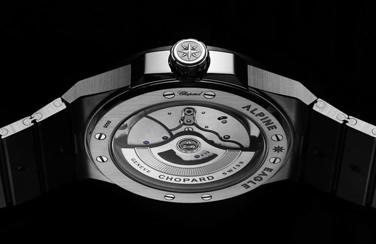 ▲Alpine Eagle採用蕭邦獨家Lucent Steel A223不鏽鋼製作錶殼,其耐磨損性是傳統不鏽鋼的1.5倍。