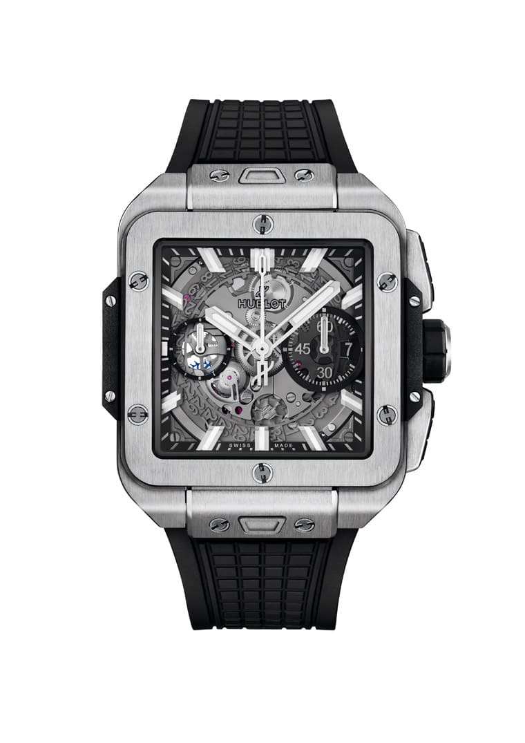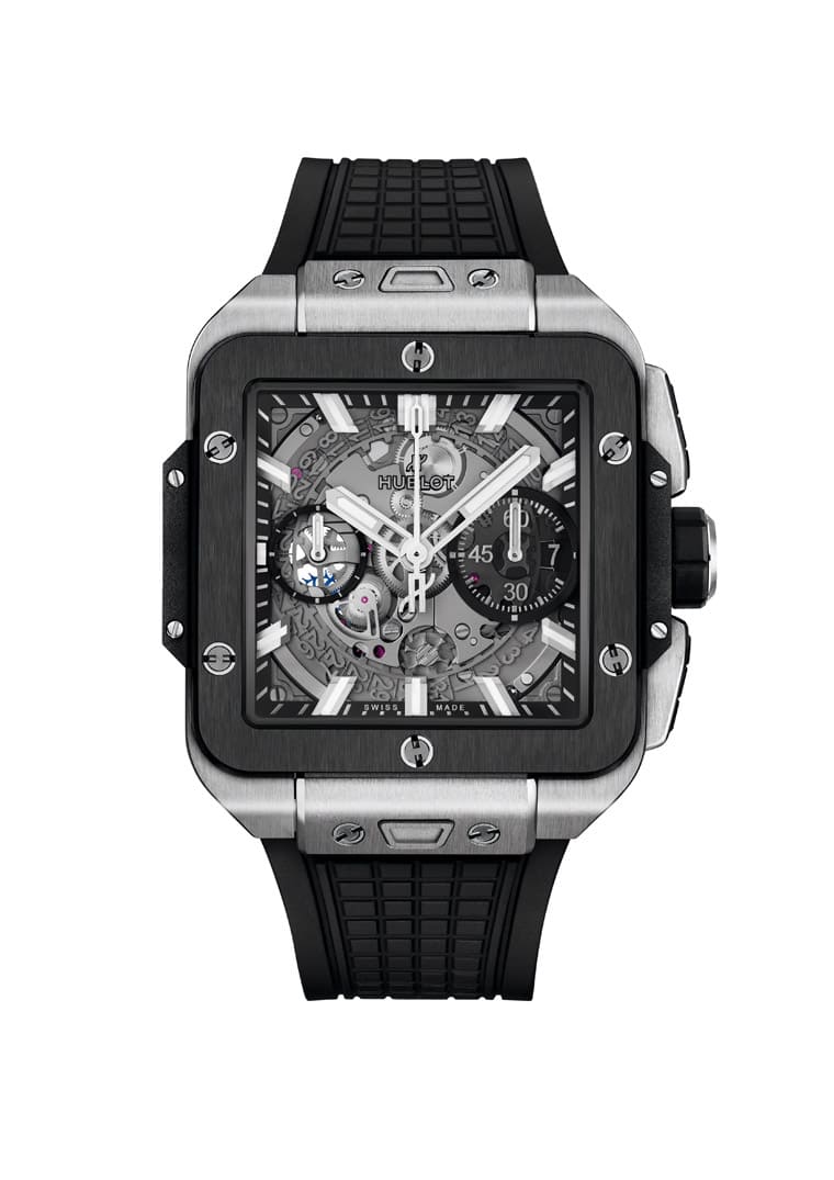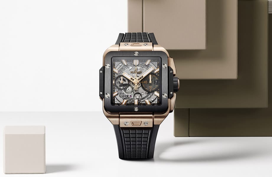HUBLOT宇舶最近的話題新作「宇宙魔方」——Square Bang Unico首度啟用品牌所未見的方形錶殼現身,手錶一方面融合宇舶大爆炸系列的精髓如錶圈上的外鏤螺絲、開面面盤結構、Unico計時機芯等,同時又激盪出富有新意的造型讓人耳目一新。Square Bang Unico一登場就有皇金、鈦金屬、黑陶瓷圈搭配皇金或鈦金屬,以及限量版All Black陶瓷殼共五種材質,品牌在2022年9月先開放給VIP預覽這系列作品後,短時間內台灣的陶瓷殼配額就已被秒殺,可見手錶的方形外觀對於收藏家而言別具吸引力。