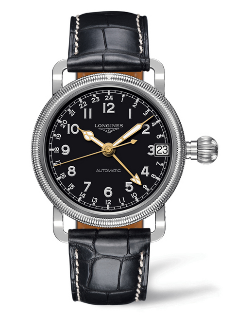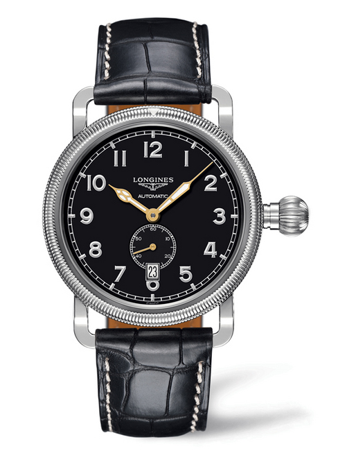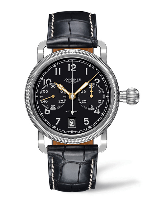 浪琴表加大龍頭飛行手錶(Avigation Oversize Crown)在保留原版錶款基本設計的同時,更搭載了自動上鏈機械機芯,並且備有三種不鏽鋼版本,保證連最挑剔的顧客都會深受吸引。基礎版本可顯示小時、分鐘與秒鐘,另一個版本具備第二時區指示,第三個版本則是配備浪琴表專屬之獨家導柱輪碼錶機芯(L788)的單按鈕計時碼錶。