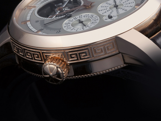 看完面盤於錶背發現「台北城市的時間等式手錶」上,並沒有刻上 "Taipei" 字樣,也沒有任何代表台北的圖樣,光是「時間等式」功能,要說是其它臨近城市的專屬手錶,肉眼上好像也分辨不出來? 原來代表台北的特徵就在燈火闌珊處,江詩丹頓將台北最具代表性地標——台北101的「祥雲」圖騰雋刻錶側,作為台北101旗艦店的慶典圖騰。品牌沒有大喇喇將台北101整棟地雋刻於錶上,而是運用品牌深厚的美學造詣,將台北這個城市與手錶緊密結合,這也是最讓筆者感動得眼框泛淚之處。