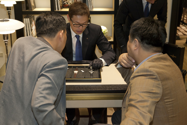 貴賓於江詩丹頓人員解說下,認識江詩丹頓中國十二生肖系列「蛇年」 手錶。此手錶為⎡Métiers d’Art中國十二生肖傳奇系列手錶⎦ 的首枚時計,將會於每年推出專屬於當年的生肖手錶,有意蒐集全套12只的收藏家,錯過這第一只可能就要抱憾了。