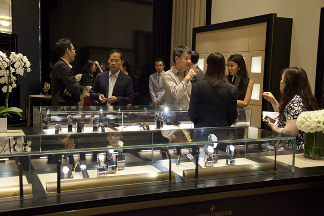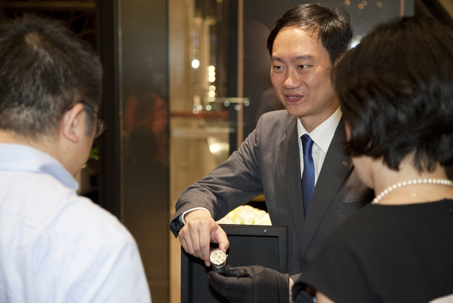 鑑賞會一開始,江詩丹頓台北101專賣店頓時就充滿人氣,大夥開心暢談,期待等一下的重頭戲——首只專屬「台北城市的時間等式手錶」的現身。