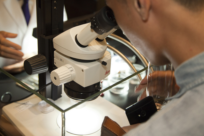 江詩丹頓台北101旗艦店設有售後服務中心,即使你沒有鐘錶需要檢查,也能讓專業鐘錶修復師帶領你用顯微鏡欣賞機芯細節。江詩丹頓身為頂級製錶品牌,每一只錶都不光只有美麗的外表,機芯的零件也決不馬虎!機芯零件上最吸引人的便是上面的打磨的圖紋,由於每個零件都由手工打磨,紋路與外觀不如機械製造如此光滑與對稱,但卻少了機械的僵化感,反到是顯露出濃濃的人文氣息,這正是江詩丹頓對傳統與工藝的堅持,一定要到這親身感受一下!