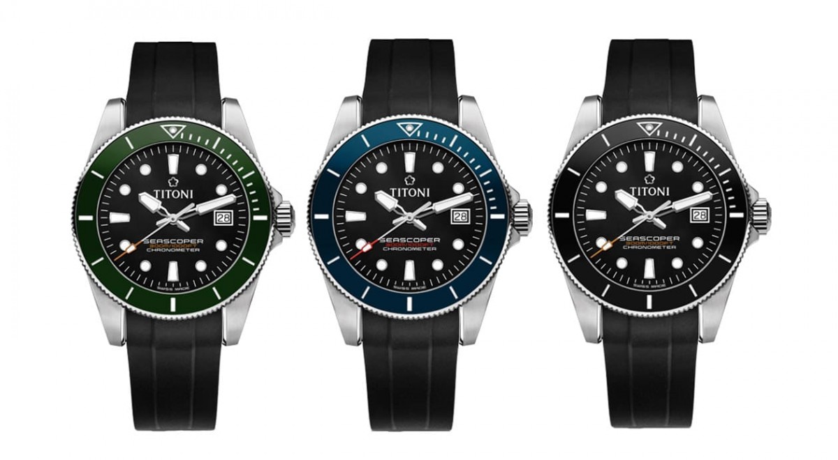 早一步問世的Seascoper分別有深藍色錶圈、面盤或是黑色錶圈、面盤等款式差異,Seacoper 300則呈現「青出於藍」的態勢,因為梅花錶同步發表TITONI綠(綠圈綠面)、星巴克(綠圈黑面)、牛津藍(藍圈藍面)、蝙蝠俠(藍圈黑面)以及午夜黑等豐富的配色組合,但要注意五色面盤為配置不鏽鋼鍊帶的版本,梅花錶也還提供搭配黑色橡膠錶帶的版本,其面盤配色則縮減為星巴克、蝙蝠俠與午夜黑等三色,也因此Seacoper 300一出道就擁有多達7種配色或錶帶版本,多樣性設計更勝系列前作。